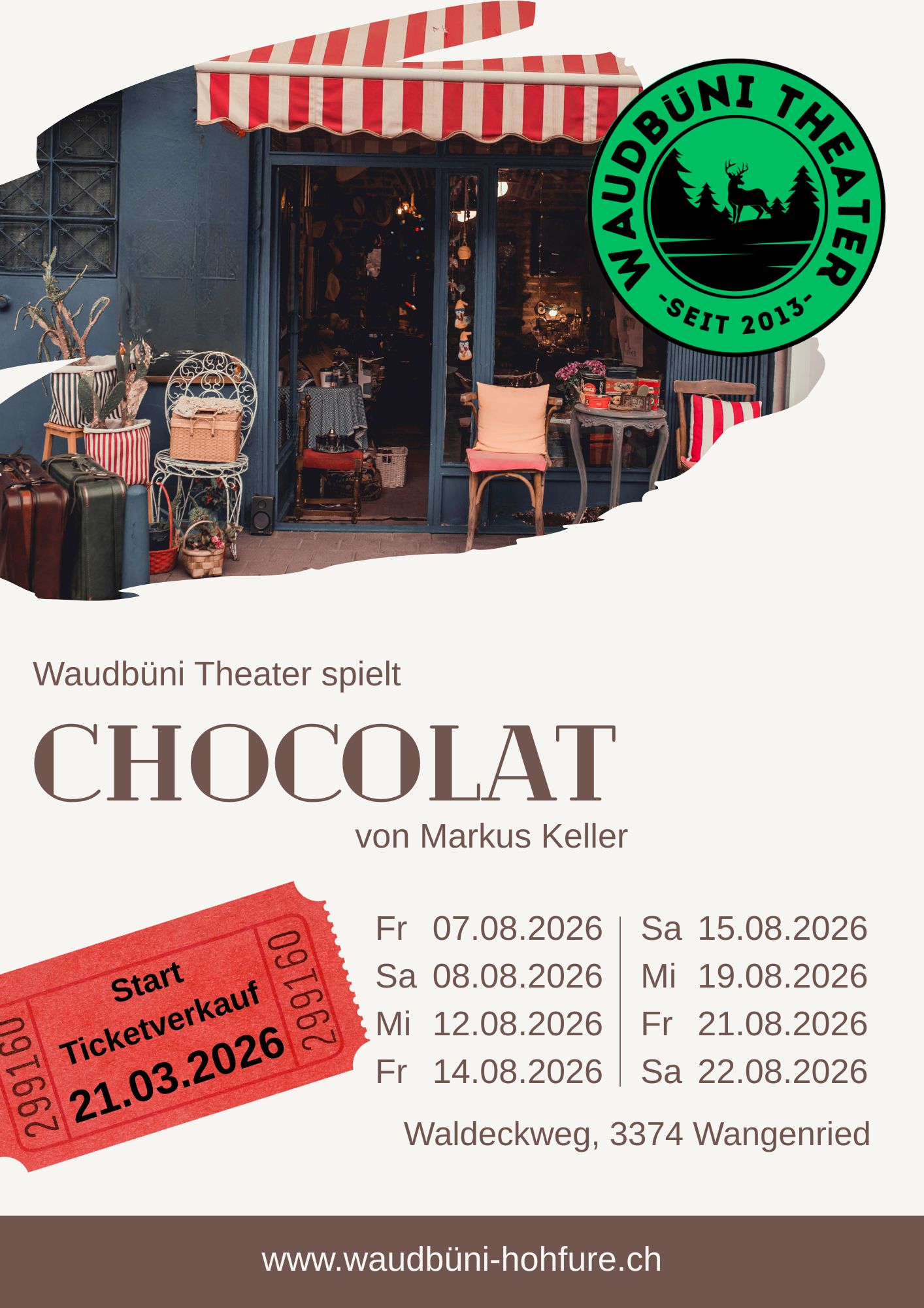 Das Waudbüni Theater präsentiert „Chocolat“ von Markus Keller.